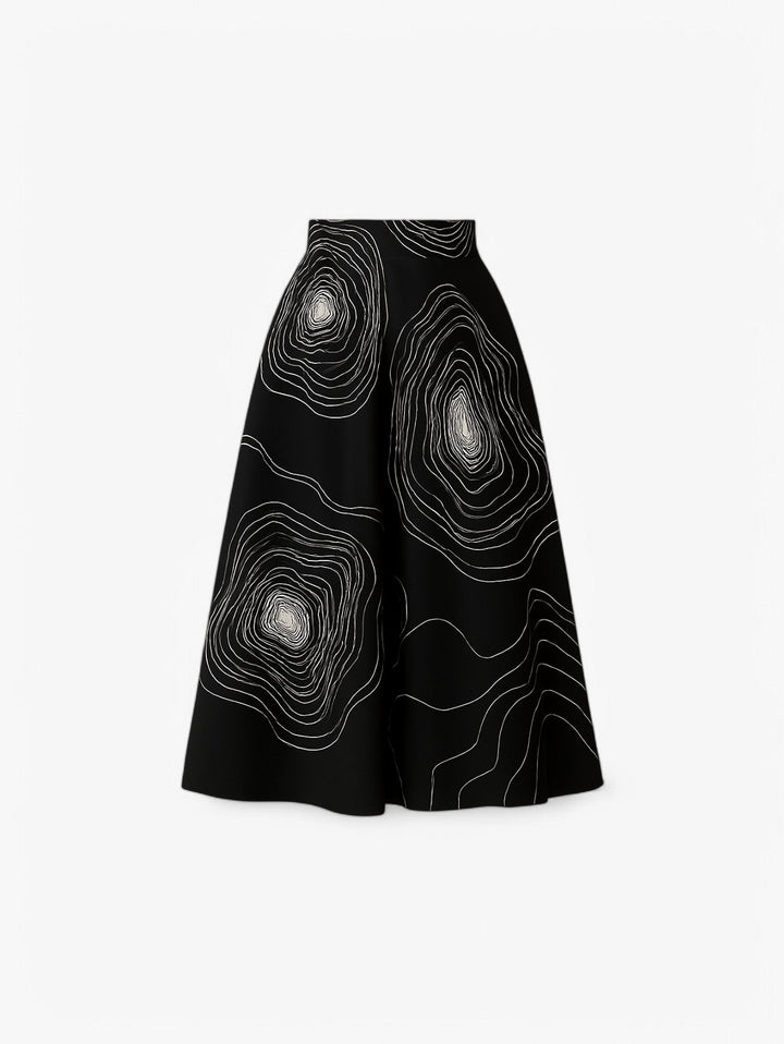 Special Features | Abstract Print, High Waist, Flowing A-line Shape |