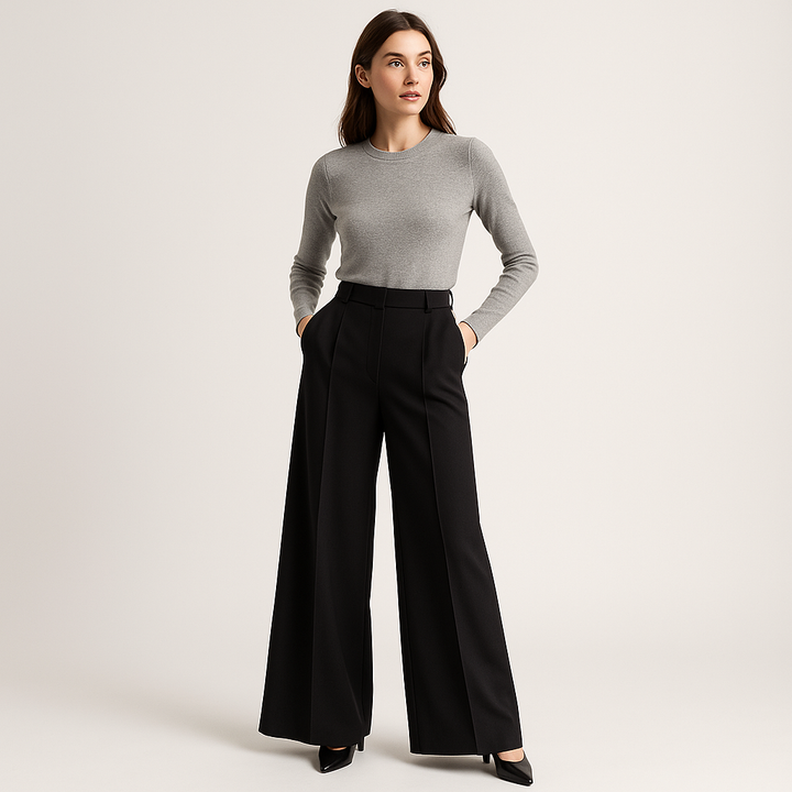 High-Waist Palazzo Trousers | Structured Twill | Refined Modern Silhouette