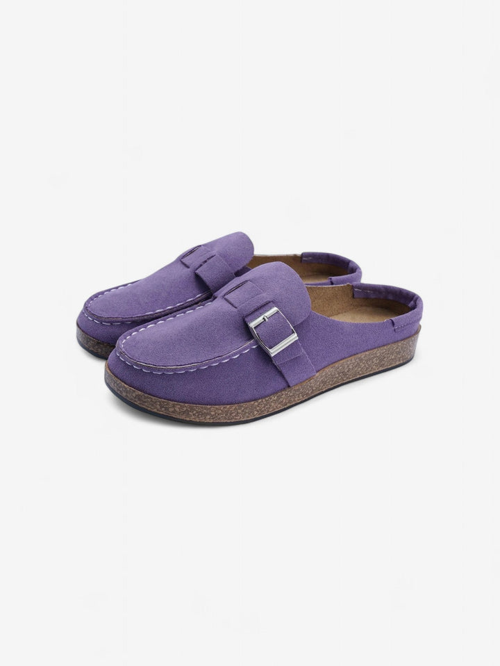 Jada Slip-On Mules | Faux Suede Clogs with Buckle Detail
