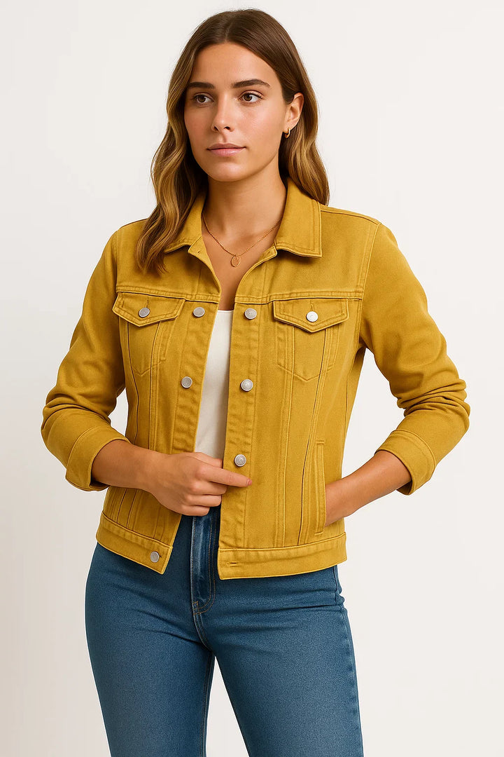 A wardrobe essential refined through MONTAVIEL’s minimalist lens. This denim jacket balances structure and ease with a flattering regular fit that complements any silhouette. Designed for versatility, it layers effortlessly over light knits or tees across seasons. The tactile denim blend offers both durability and a soft hand feel, finished with polished metal buttons for a subtle statement.