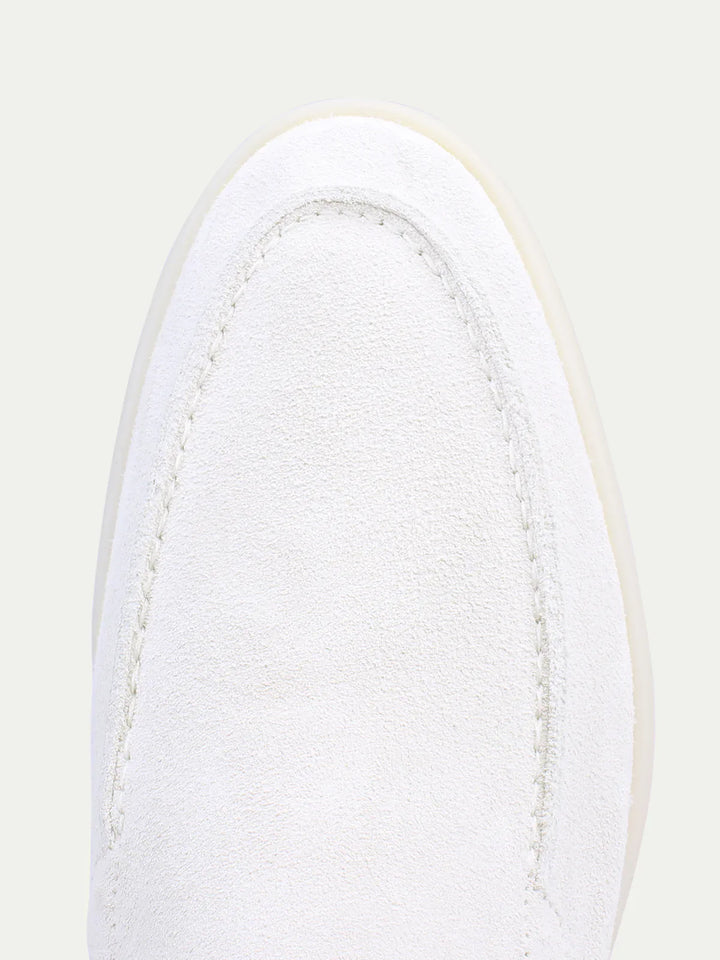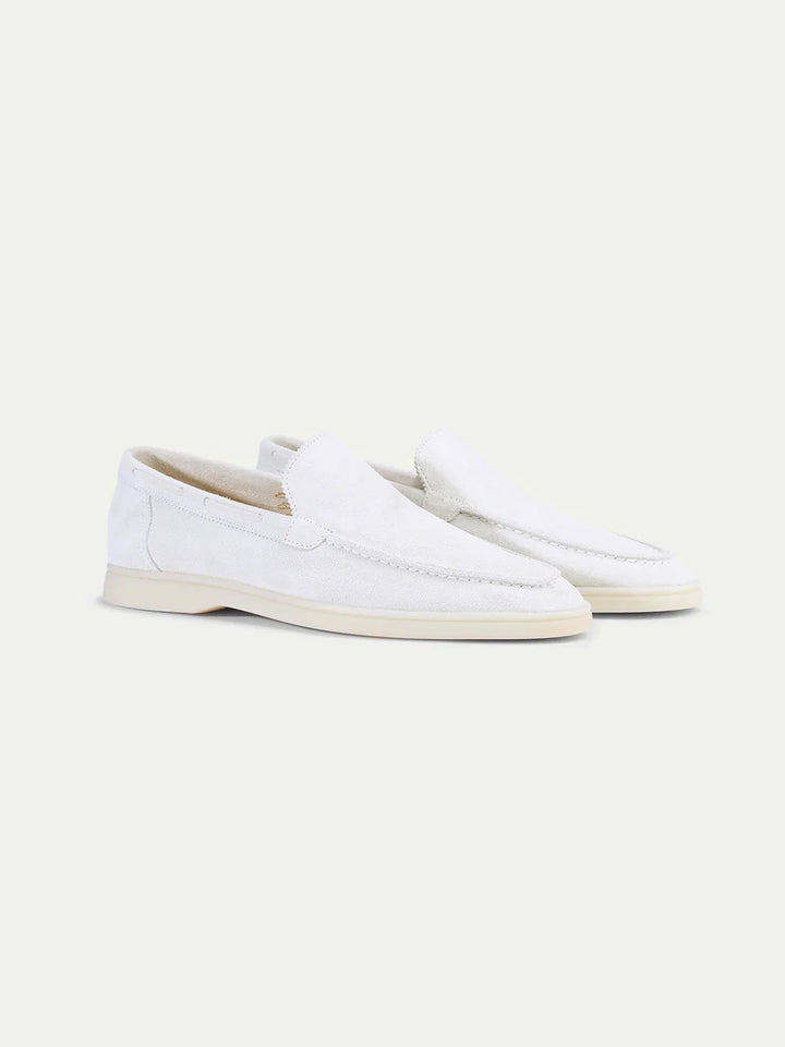 A refined essential from the MONTAVIEL Maison line, these off-white loafers combine Italian craftsmanship with minimalist sophistication. Made from soft genuine suede, they offer an effortless blend of comfort and style for warmer days.