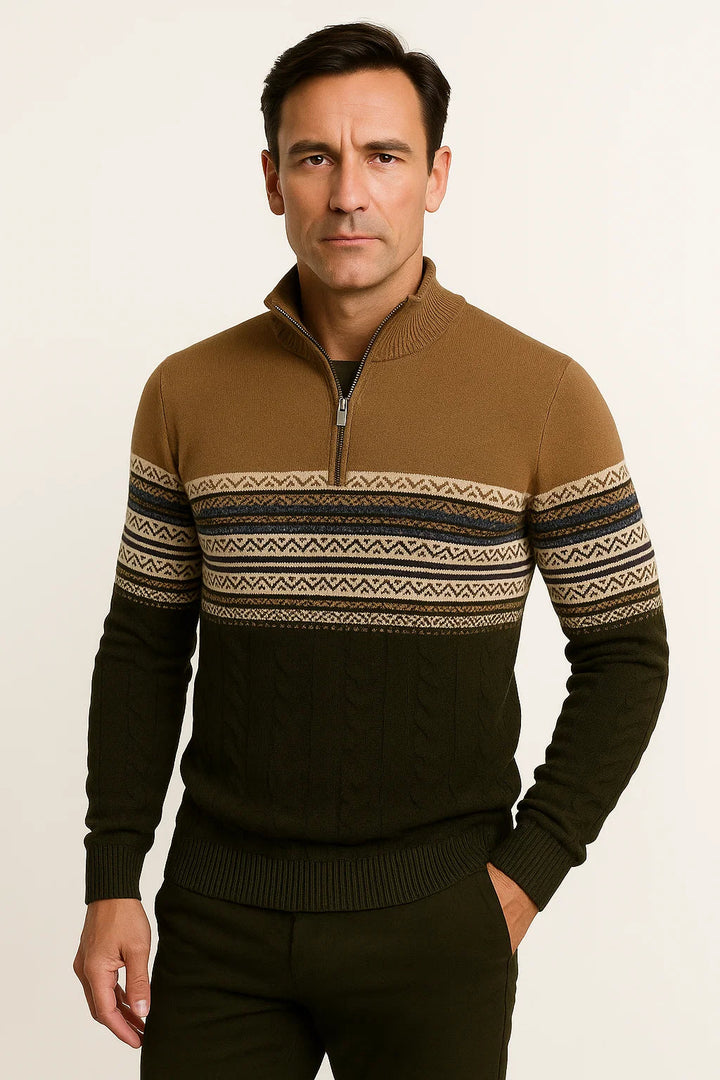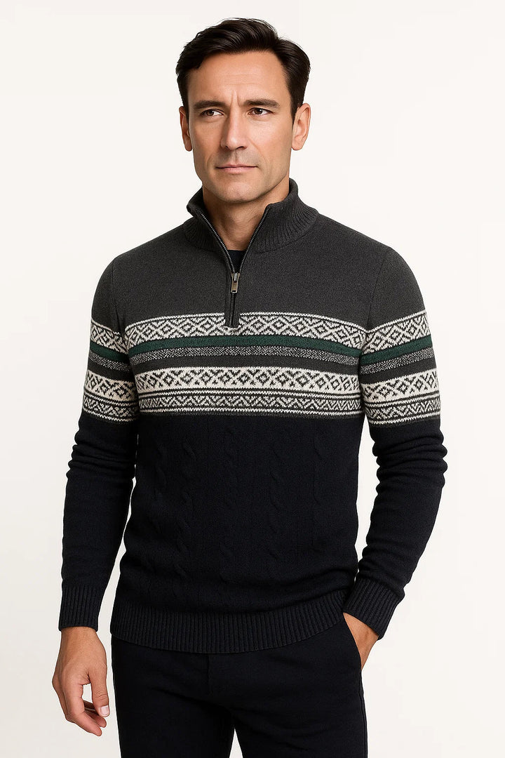 Men’s Fair Isle Quarter-Zip Sweater | Cotton Blend | Modern Nordic Design