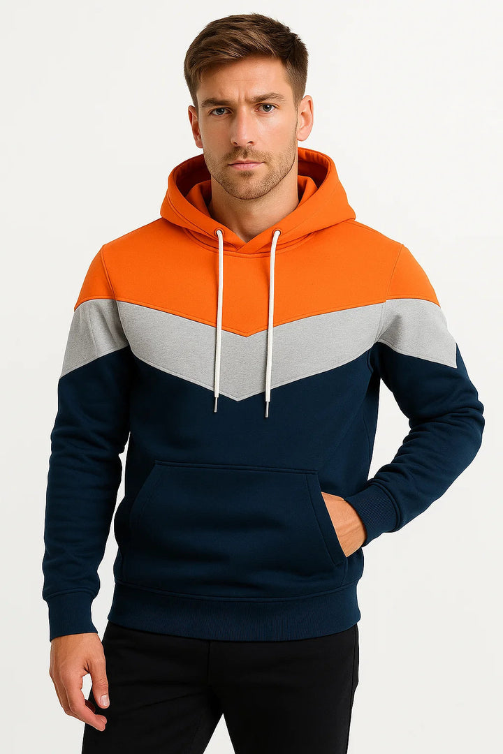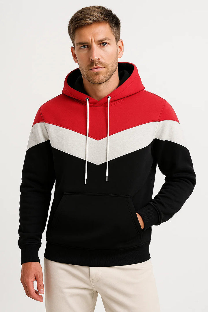 Men's Tricolour Hoodie | Casual Relaxed Fit with Chevron Design