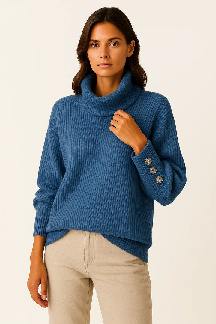 Ribbed Turtleneck Sweater | Button Cuff Detail | Relaxed Fit